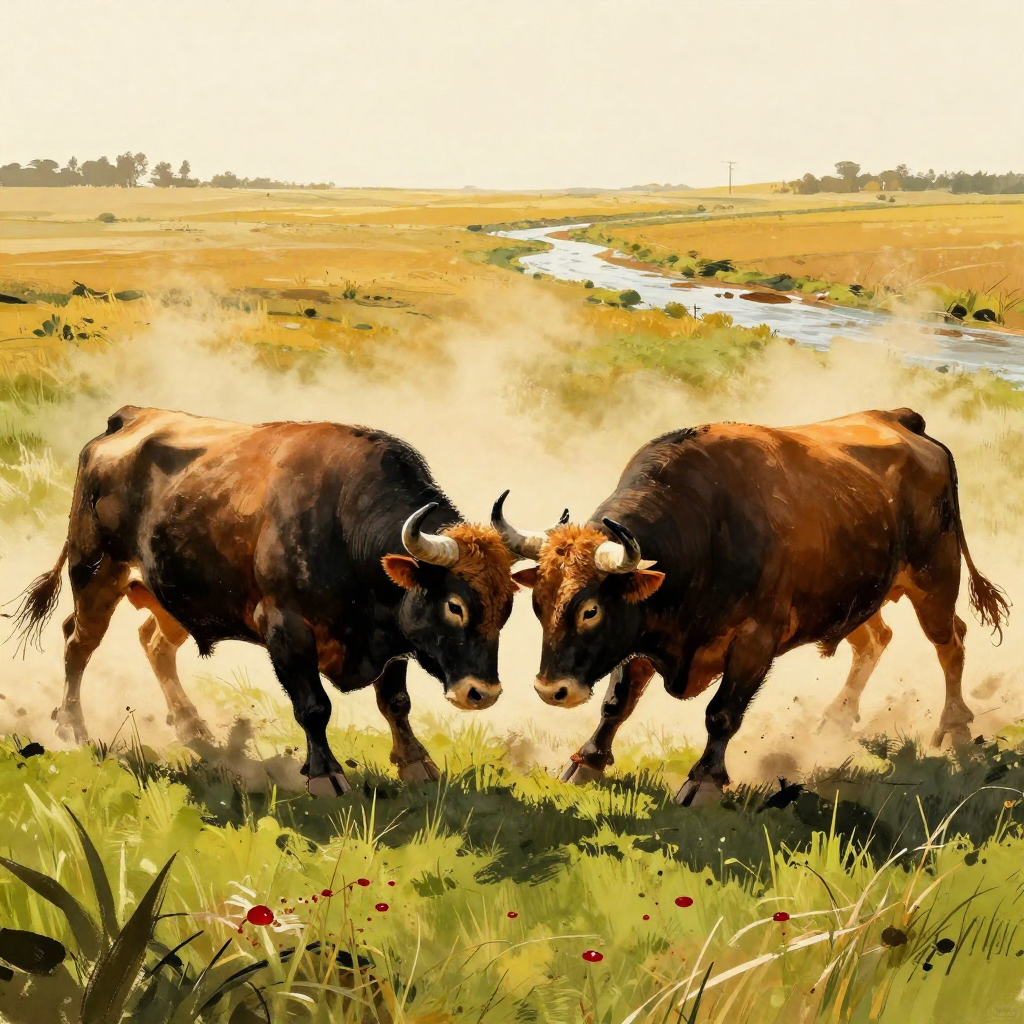 | bold-action | Dynamic diagonals, warm ochre | Animals, combat, hunts, storms |